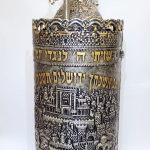 Torah cas comprimés enrobés d'argent spectaculaires avec la Couronne Temple