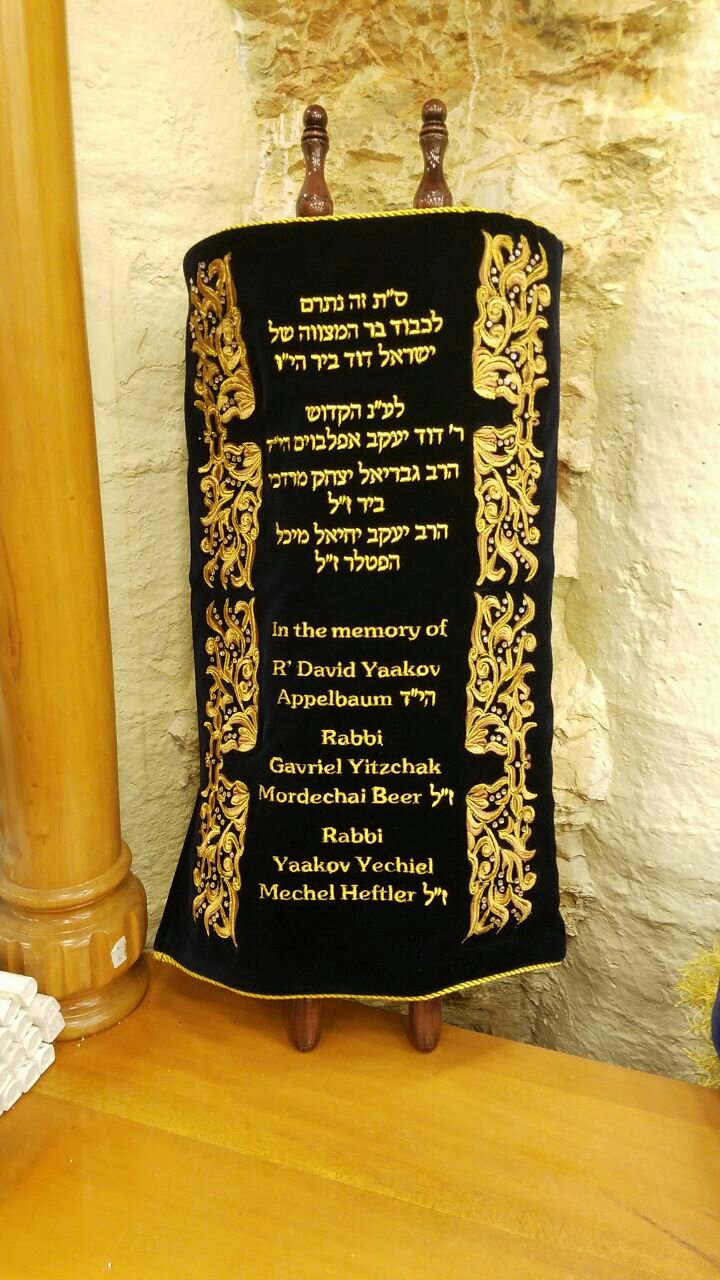 מעיל לספר תורה מקטיפה כחולה משובחת